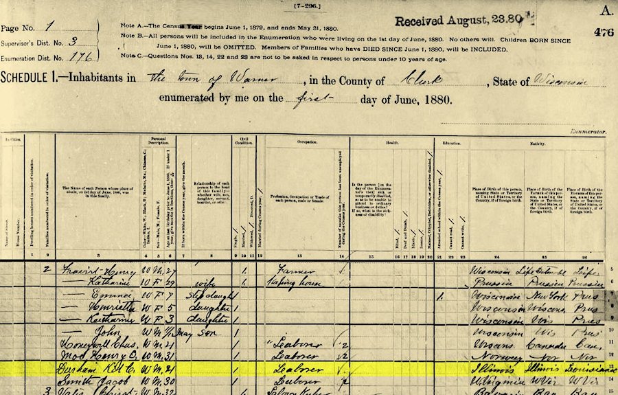 ----Sources: Census & family records, Clark Co. Press, March, 1883; Postcard sent from Greenwood, WI in 1910 from the Steve Roberts Collection; The U.S. National Archives and Records Administration (NARA); Missoula, Montana, City Directories