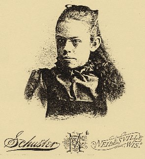 This yet unidentified photo was from a family collection owned by the Benware and Barton family. The notation on the bottom indicates it was taken by "Schuster". The photographer could well have been Mattie Schuster of Neillsville, Wis. who married L.H. Marsh in 1891. If this was an indication that the picture below was taken before her name changed, it would place the time of photography before 1891. If you have any information which could lead to a greater understanding of who the individual in the photo below may be, please contact me.
