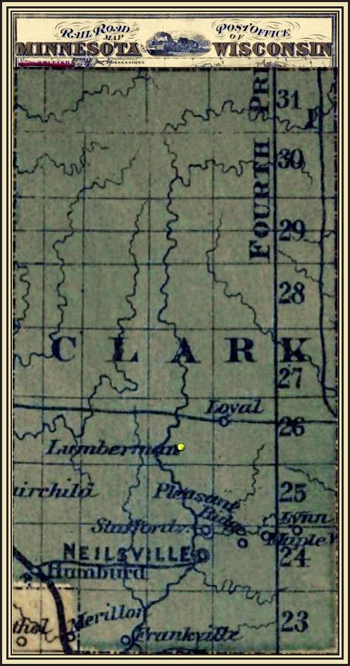 Lumberman was one of primary pineries in the newly formed county of Clark when it was separated from Jackson county by an act of the state legislature, July 6, 1853, just 5 years after statehood