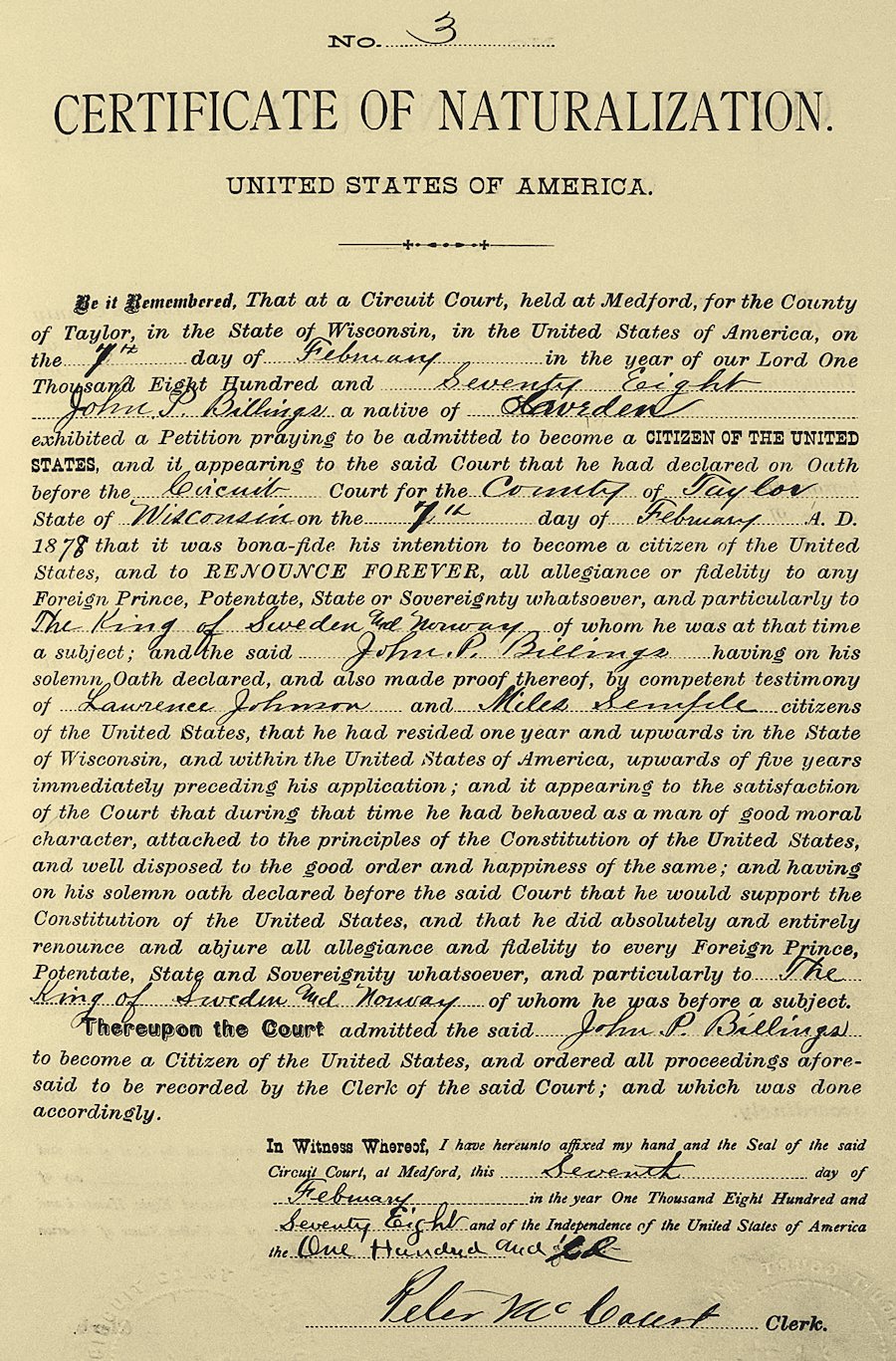 Single White W 1874 Abt 1874 WI John P Billings Johanna Billings Sweden Sweden