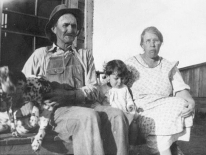 Pictured above is Adrin Eugene and Maude Murphy Purgett with grandaughter Ida Maude Memmel. Purgett farm. (this farm now owned by Scott Purgett)