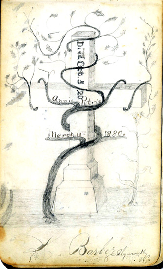 Pictured above is a page from an autograph album which once belonged to my great grandmother, Annie Petrie Olson. Annie's family - Adam Petrie, Elizabeth Moore Petrie and children George Walter, Edith and Annie lived in Unity from 1874 until 1888. The book must have been a Christmas gift in Dec., 1879. I counted 71 pages in the album with inscriptions from friends and relatives (1879 - 1889). Each inscription is hand written, usually with name, date and town. Some of the calligraphy is wonderful. In paging through, I see Unity, Thorpe, Brighton, Chippewa Falls, Concord, Stockbridge, Colby, Eau Claire, Neillsville, Oshkosh, Milwaukee, Withee. Most of the entries are from Unity. I eventually hope to provide scans of every page and this one, dated March 11, 1880, was from ? Barber, of Plymouth, WI.