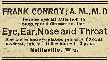 Dr. Thomas Frank Conroy testified at the Marion Prieur trial when Miss Lizzie Nolan and Father Jungblud of Neillsville were found guilty Child Abuse.