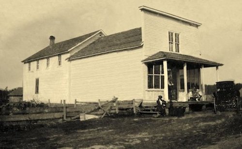 This store was built by John and Tony Hein, near their Stave and Heading Mill which was built in 1885. A boarding house was built just east of the Mill, and this was also run by them. About seven or eight houses were also in Heintown at that time.