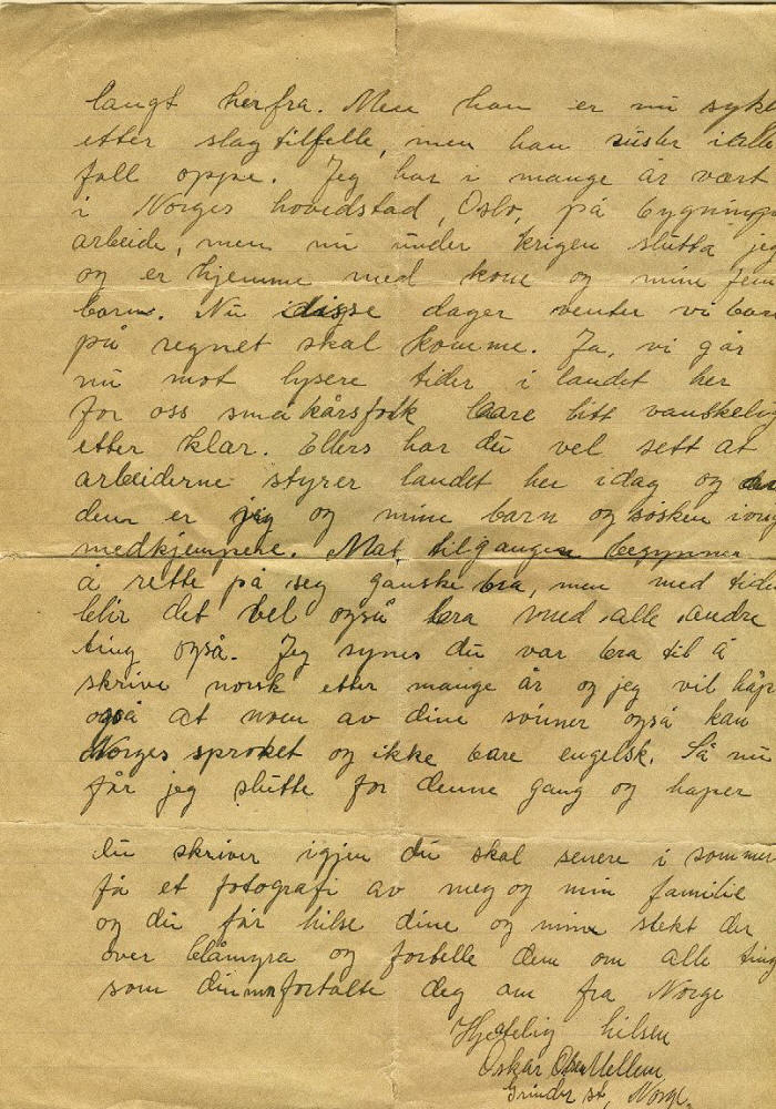The first years we were here it went quite hard for us because we paid all our money for the land and had to work for our daily bread. At the same time the war broke out when all business was poor and an uncertain thing.