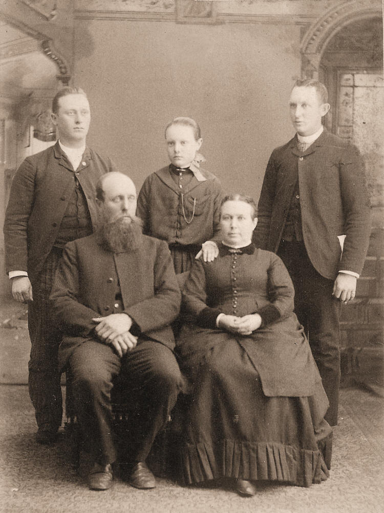 One son, Louis, died in England in World War I. Two daughters Mae and Mildred, five brothers and four sisters are deceased.