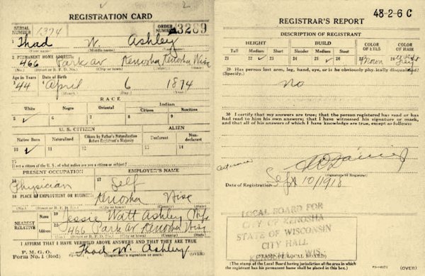 Bio: Ashley, Thad Warner, Dr. (6 Apr 1874 - 1954)
