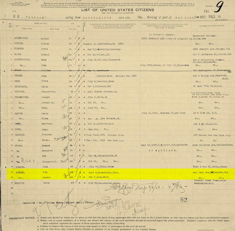 Children: Allen Watt Ashley 1905–1911; Elaine Ashley 1910–1994; Carlyn Ashley 1914–?; Richard W Ashley 1915–?