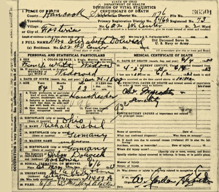 Death Date: 14 Feb 1917, Avon, Lorain, Ohio