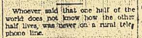 Whoever said that one half of the world does not know hot the other half lives, was never on a rural city phone line.