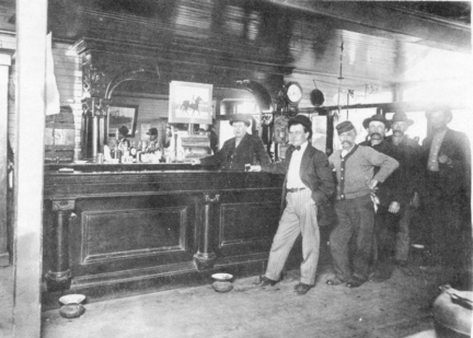 Surnames: CHAMNESS GIPP HELMS MARTEN PUTNAM SAUTER SWAN TABOR WEINGARTNER *There may be a brief delay before the photo displays. Dorchester, Martens' Saloon (circa 1910) Behind the bar is Fred Martens, L to R: Ernie Tabor, Unknown, Fred Gipp, George Putnam and Dick Helms standing at the bar. *Note the Civil War cap on the third man.
