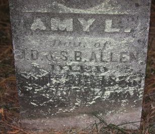 Amy L., the daughter of John D. & Sarah B. Allen, died 21 Sep 1875 at the age of 1 yr. 4 mo., 15 days. She is buried in the Brighton Cemetery, Unity, Sec. 7, Brighton Township, Marathon Co., Wisconsin.