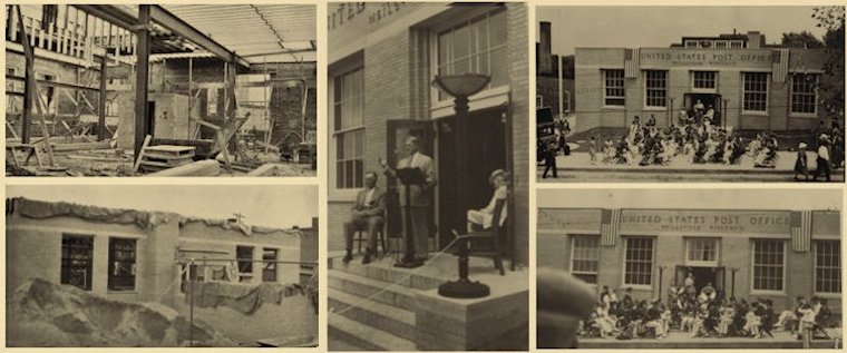 The Mural below the postmaster’s door at the Neillsville Post Office was painted in 1940 by artist John Van Koert and is titled ‘The Choosing of the County Seat.’
