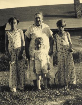 Hannah with two of her granddaughters, Ardeth and Charlotte Mahn, and grandson Jimmy Schipper