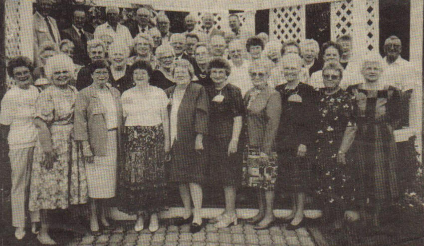 Clarence and Doris Aumann, Loyal; Paul and Deanne Bartell, Wausau; Marvin and Mae (Bender) Hemp, Neillsville; Arvid and Marian (Beyer) Berger, Neillsville; Harold and Doris (Counsell) Osborn, Carbondale, IL; John and Velda (Dahnert) Reinart, Neillsville; Eugene and Juanita Diercks, Vesper; Arthur and Adelaide (Farrand) Drescher, Neillsville; Robert and Jean Hemp, Universal City, TX; Roy and Evelyn Keller, Arlington, TX; Ernest and Jane Kissling, Neillsville; Wilmer and Ethel Kroll, Neillsville; Marcella (Lipke) Opelt, Neillsville; James and Alice (Lukas) Mc Grew, Hiwasse, AR; Ruby Meihack, Neillsville; Charles and Lou Neff, Neillsville; Vernon and Joyce (Neperud) Rood, Sparta; Marion (Neuhaus) Brager and daughter Beverly, Lublin; Arlene (Opelt) Rosandich, Oak Creek; Ethel (Ormond) Zager, Neillsville; Harry and Leanna (Ott) Pankau, Wautoma; Betty (Pepper) Kapfer, Janesville; Richard and Gerri Prochazka, Rochester, MN; Glenn Roberts, Neillsville; Willmette (Russell) Roberts, Neillsville; William and Jeanette Schlinsog, Middleton; Albert and Lois (Schwanebeck) Hasz, Granton; Howard and Lorraine (Schwanebeck) Jespersen, Morristown, NJ; Ellsworth and Shirley Shock, Neshkora; Roger Short, West Allis; Anton and Beatrice Statz, Wisconsin Rapids; Helen Trewartha, Waupaca; George Vobara, Medford, OR; William and Violet (Wachholz) Neuhaus, West St. Paul, MN; Ruth (Wetzel) Godwin, Milwaukee; Donald and Rosie (Wieting) Kunze, Neillsville; Kenneth and Ruth (Zipfel) Maxon, Bay City, MI; and Donald and Hilda (Swann) Lipscy, Neillsville, Wis.