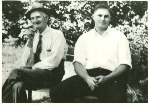 The bride's father, Oluf Olson, and her husband, Lowell Dorn