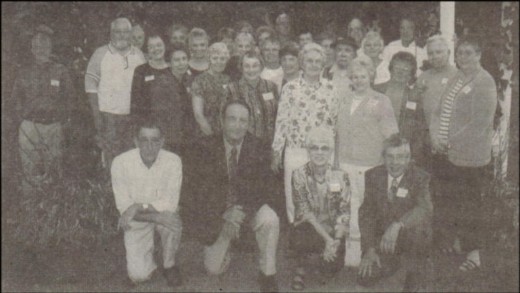 Attending were Helen (Afkind) Johnson, Hixton; Mrs. Sarah (Albrecht) Smigelski, San Jose, CA; Mr. and Mrs. Bob Bell, Neillsville; Eugene Crockett, Wichita, KA; Connie (Duchow) Patterson, Alma Center; Mr. and Mrs. Arne Eisentraut, Apache Junction, AZ; Mrs. Alice (Gall) Wirkuty, Neillsville; May Lou (Hagie) Meredith, Eau Claire; Mr. and Mrs. Sam (June Janisch) Corese, Norridge, IL; Charles Lincoln, Moses Lake, WA; Mr. and Mrs. Tom (Edith Lindner) Nauertz, Ft. Atkinson; Mr. and Mrs. Jim (Cheryl Mabie) Holt, Black River Falls; Mr. and Mrs. Merlin (LaVonne Mills) Gerber, Madison; Kay (Overman) Johnson, Neillsville; Mr. and Mrs. Wayne (Maureen Meier) (no surname given), of Neillsville; Vivian (Randall) Hotchkiss, Robbinsdale, MN; Elaine (Reams) Cheney, Kenosha; Judy (Reese) Enerson, Ackley, IA; Sonja (Schlemme) West, Windsor, CO; Mr. and Mrs. Ed Schwellenbach, Janesville; Bob Struensee, Neillsville; Mr. and Mrs. Ron (Erma Stucki) Markus, Kewaskum; Ann (Turville) Thompson, Marshfield; Mr. and Mrs. Ben Urlaub, Neillsville; Joan (Meinholdt) and Tom Wavrunek, Neillsville; Mr. and Mrs. Ron Yankee, Round Lake Heights, IL and Eileen Zank, Neillsville, Wis.