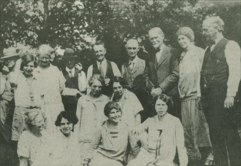 [Photo Caption - Judge James O’Neill, third from the right, back row, with his wife Marian, circa 1920, enjoyed socializing with family and friends. Arriving in Neillsville in 1873, to practice law, O’Neill became Circuit Judge in 1898, serving that position until Jan. 1, 1912. The O’Neill home was on the southeast corner of State and Fifth Street intersection.]