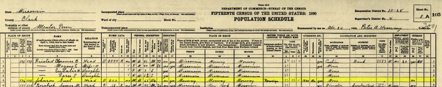 1930 Federal Census, Mentor, Clark, Wisconsin, United States, Sheet Letter: A; Sheet Number: 8