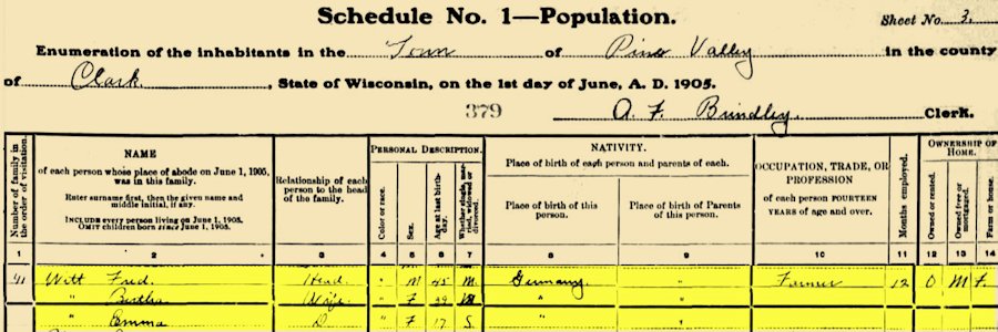 Friends & Nearby Neighbors from the 1905 Wisconsin State Census |