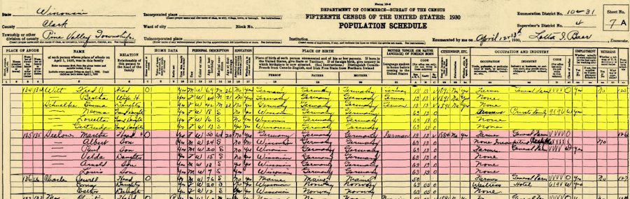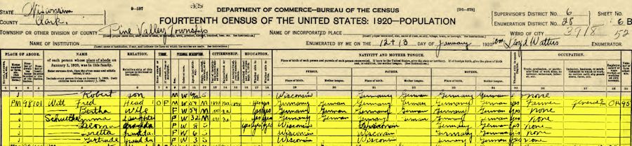 1920 Federal Census, Pine Valley, Clark, Wisconsin,
