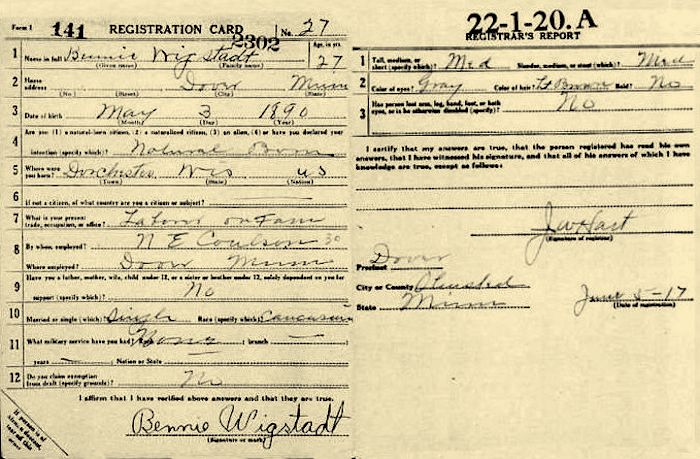 and Bessie (Quarme) Wigstadt, was born in the Town of Mayville May 3, 1890, and