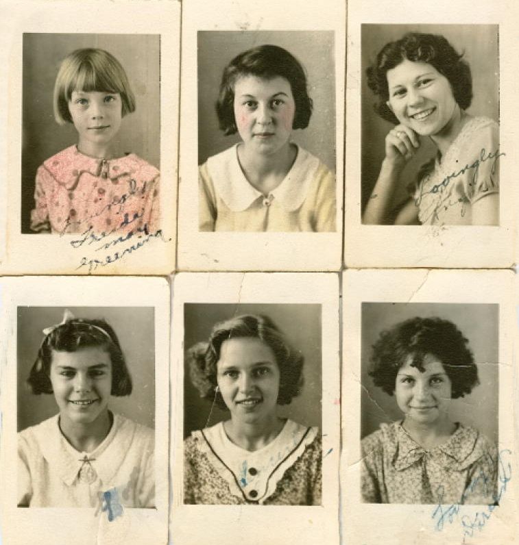 Top Row L to R: Freda May Greening, Frances Podrovitz, Unknown, Bottom Row: L-R Unknown, Eunice Loy?, Doreen