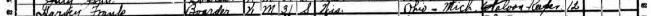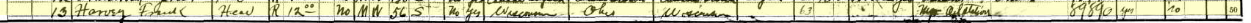 Frank Harvey, boarder, white, male, age 31, single, born in Wisconsin, parents