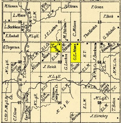 In 1897 she was married to Ole Moen, also in the town of Worden. To this marriage five children were born; Olaf Moen of Los Banos, Calif., Mrs. Hugo Wolters and Mrs. Arthur Smosal of Withee and Chester Moen of Greenwood. One child died in infancy. Also two stepchildren survive here, Otto Moen of Ely, Minn. And Mrs. Emma Larson of Stanley.