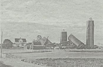 not show any sign of damage. The calf barn lay in shambles, with debris across
