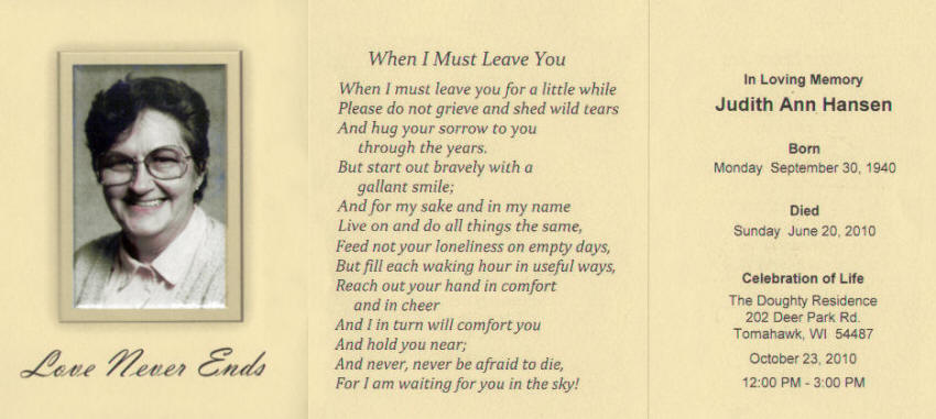 Obit: Hansen, Judith "Judy" (1940 - 2010)