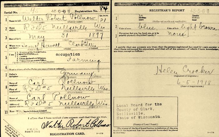 Military Service -- Draft Registration 1917-1918 Clark County, Wisconsin, United States