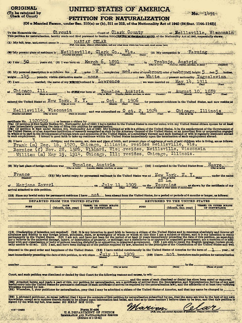 Lawrence Celar was born August 10, 1889 in Jugoslavia. Marian Zavrl was born
