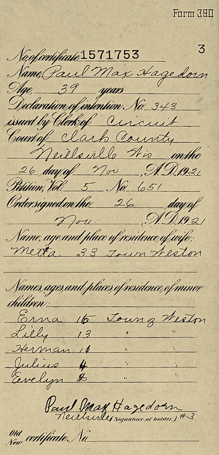 Hagedorn, Paul Max #3 (22 March 1882 - 1 June 1965)