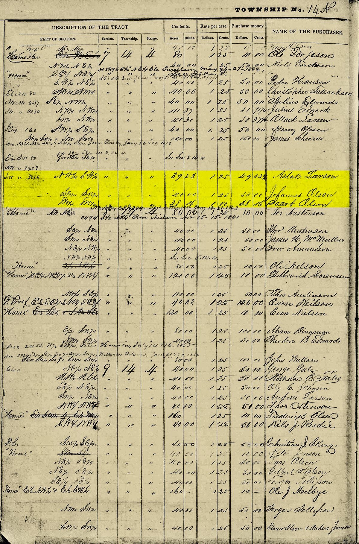 *Parents: Johannes Olson (1816–1896) & Andrea Johnson Olson (1811–1881)