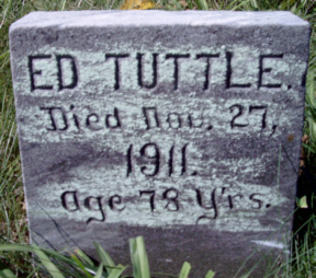 Edward J. Tuttle was the Grand-uncle of George Edward Thurber and he lived with him and his family when the 1910 Census was taken in Loyal, Clark County, Wisconsin. George Thurber's mother, Freelove, was the oldest sister of Edward J. Tuttle. The other siblings were: Henry Benoni (b. 29 Nov 1820 in Freetown, Cortland, NY); Sarah "Sally" Tuttle (b. 20 May 1822 in Freetown, Cortland, NY); Rhoda (b. 14 Nov 1823 in Freetown, Cortland, NY); James (b. 30 Sep 1825 in Freetown, Cortland, NY); William S. (b. 12 Apr 1827 in Freetown, Cortland, NY); Hannah A. (b.17 Oct 1829 in Freetown, Cortland, NY, d. 5 Mar 1883, Allegany, MI); Ruth (b. 26 Sep 1831 in Freetown, Cortland, NY); Lucina (b. 21 Mar 1832 in Freetown, Cortland, NY, d. 2 Jan 1909, Jamestown, Ottawa, MI); Azubah (b. 5 Mar 1836 in Freetown, Cortland, NY, d. 14 Jun 1873, Seattle, WA); Mary Minerva (b. 19 Feb 1838 in Freetown, Cortland, NY); and Solomon Wade (b. 4 Apr 1840 in Freetown, Cortland, NY, d. Australia).