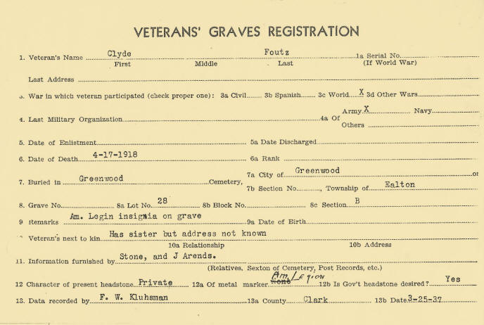 Bio: Fouts / Foutz, Clyde Elden (1898 - 1918)