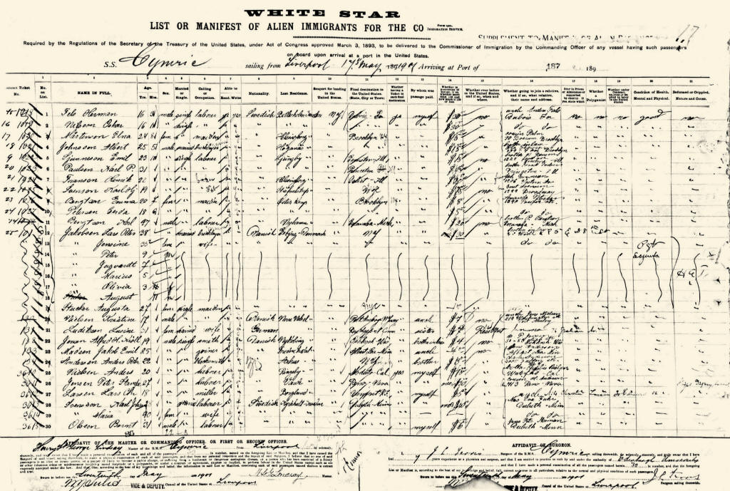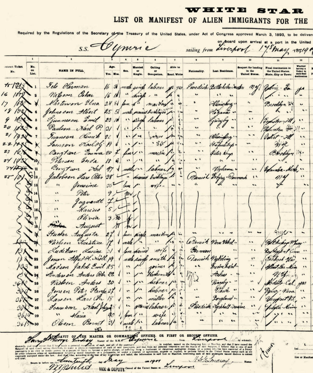 1901 Ship Manifest [Full] [Left half enlarged] [Right half enlarged]