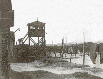 Guards sat in the tower to observe the German Stalag 17B at Krems, Austria. Clarence Meinhardt was a prisoner of war at the camp for more than a year. (contributed photo). |