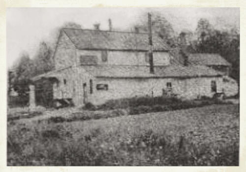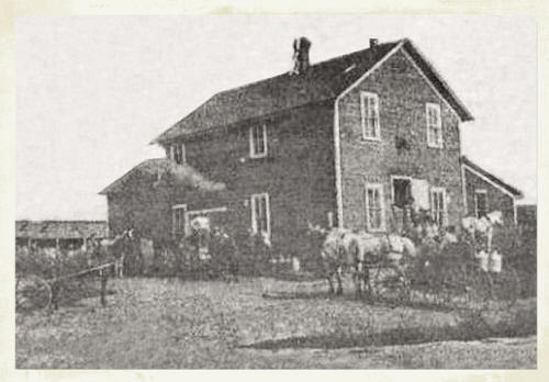 Hoppa's Corner (approaching from the north) as it looked in the early 1930's when Arnold Hoppa operated it as a cheese factory/tavern. *Note the gasoline pump and (to the right) the milk can delivery dock. |