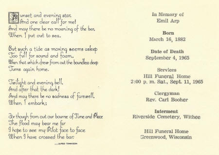 Obit: Arp, Emil #3 (1882 - 1965)