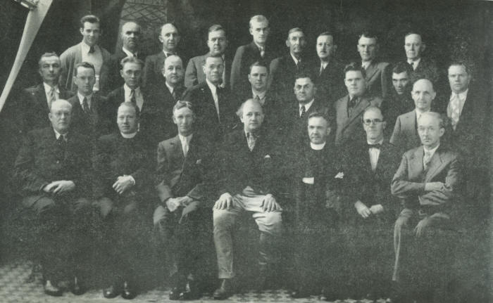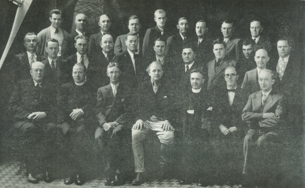Bottom row: Rev. E. G. Pfeiffer, Rev. John Trinko, Mayor Ed Buker,