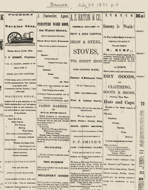 July 16, 1870 Fire in Black River Falls which consumed the Eaton Hardware Business. |