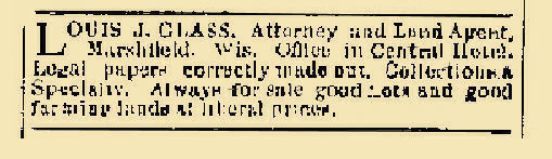 Louis J. Glass Advertisement from the Marshfield Times, 1882