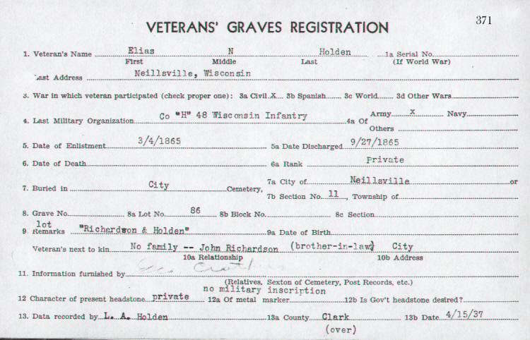 Monument has an inscription: "Richardson-Holden" only, with no military information whatsoever.