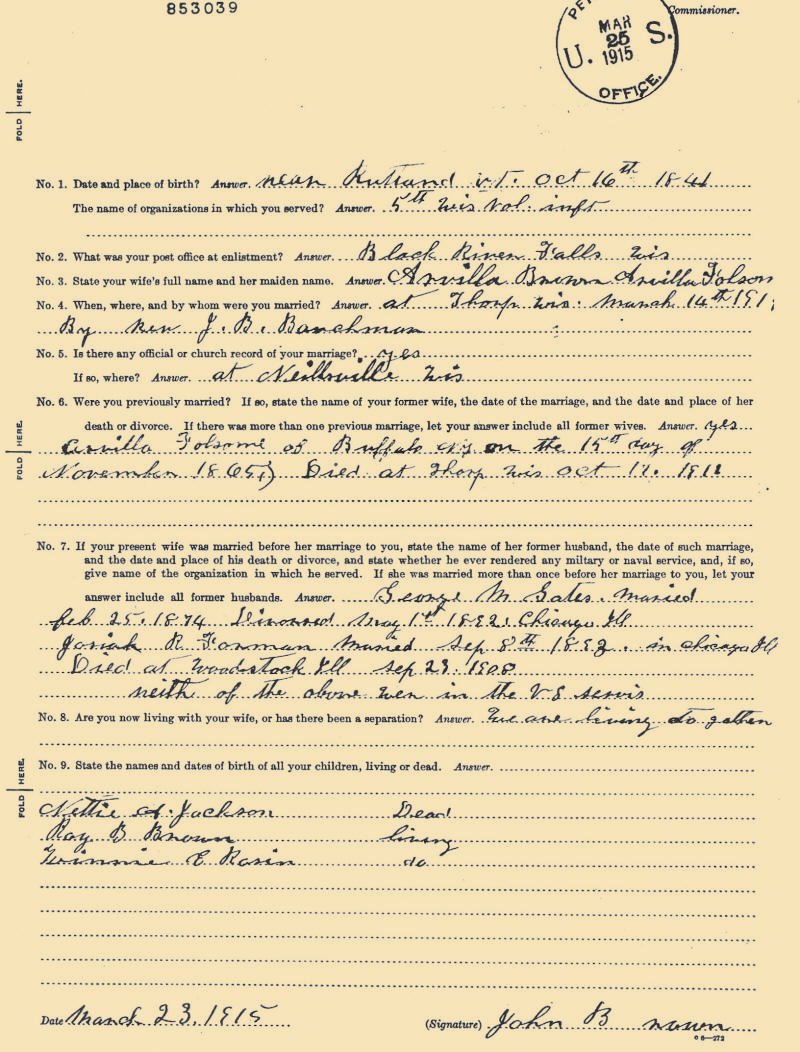 Co G 5th WI Inf. served 1 Sep 1864 –20 June 1865 INF. Mrs.