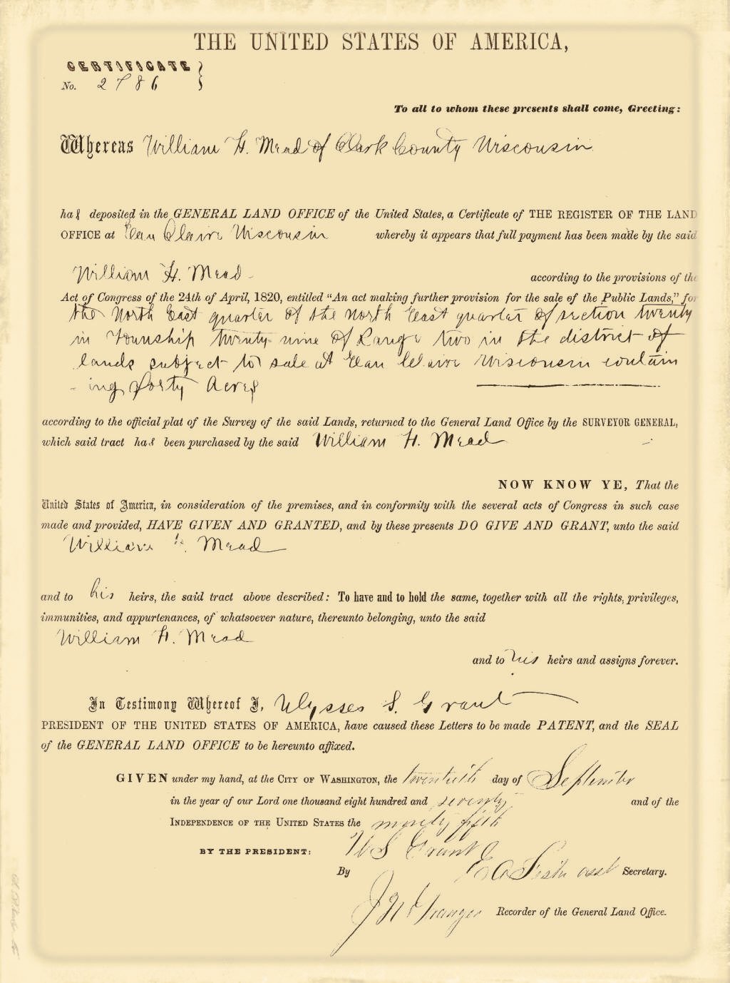 created Nov. 16, 1895. The Town of Mead was named for W. H.