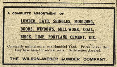 The Wilson-Weber Lumber ad above appeared in The Humbird Enterprise, Humbird Wis., pg. 1, 23 May 1908 |