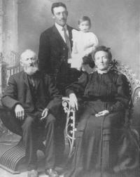 NEHEMIAH B. TAYLOR & WIFE ELIZABETH (BETSEY) ANN TRAVIS MILLER This photo was taken at Colby Wisconsin 1901 and their daughters (Nancy charlotte Taylor & Edgar Wilkins) son Oscar Wilkins and his child. |