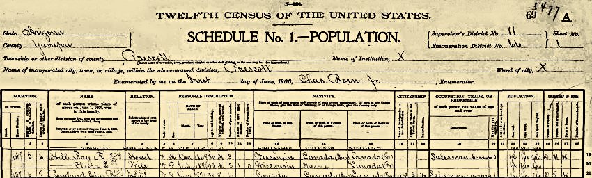 Edw R Pentland 1900 Male 29 Married White Head 6 Jun 1871 Canada 1894 1887